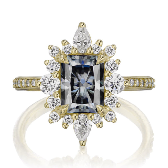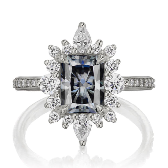 The vintage-inspired midsize Talia makes a statement engagement ring or treat-yourself gift. Featuring a radiant cut grey Iconic™ moissanite center, accented by conflict-free lab-grown diamonds. The Talia is as ethical as it is sparkling.