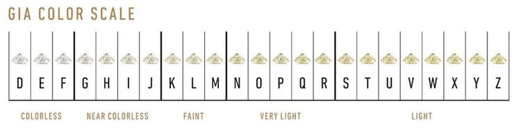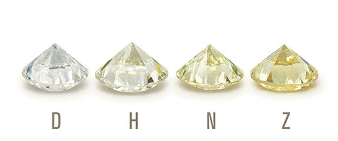 âColorâ refers to the natural amount of color or lack of color that is present in the diamond. When diamonds are formed in the earth or in a lab, trace amounts of other elements can interact with the carbon atoms adding a hint (or a lot!) of color to a diamond. The color scale ranges from D-Z. Youâll notice D-F is defined as âcolorlessâ and G-I is ânear colorlessâ. At Kristin Coffin Jewelry, all of our lab-grown diamonds are in the D-G range. Even the G colored diamonds are hand-selected by Kristin and tend to be a âstrongâ G and are colorless to the untrained eye. Â