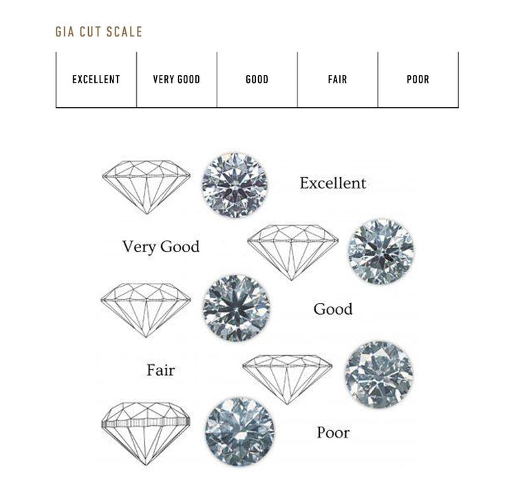Round shaped diamonds are graded on a scale of Ideal to Poor, and are in 3 categories: Cut, Symmetry, and Polish. Fancy shaped diamonds are graded in 2 categories: Symmetry and Polish and graded on a scale of Excellent to Poor.
