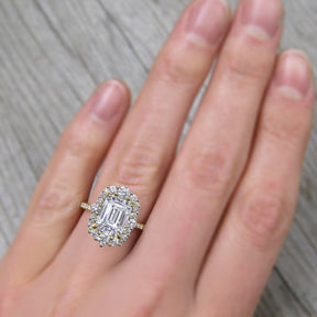 Emerald Cut Lab-Grown Diamond Center, Diamond Halo
