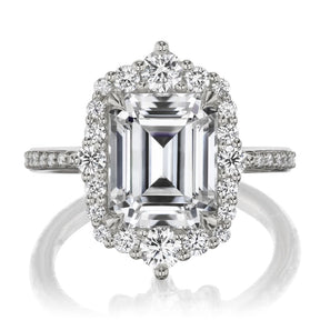 The vintage-inspired extra large Adeline makes a statement engagement ring or treat-yourself gift. Featuring an emerald cut Forever One™ colorless moissanite center from Charles & Colvard, accented by conflict-free lab-grown or Canadian mined diamonds.