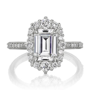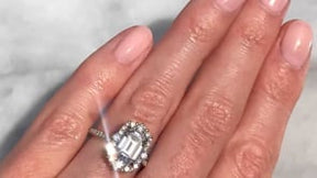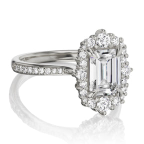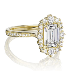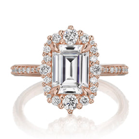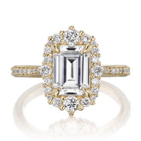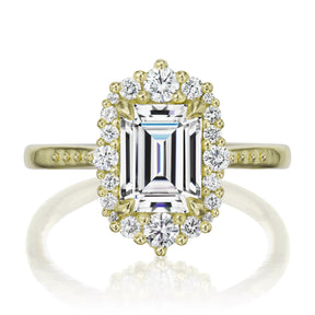 The vintage-inspired midsize Adeline makes a statement engagement ring or treat-yourself gift. Featuring an emerald cut Forever One™ colorless moissanite center from Charles & Colvard, accented by conflict-free lab-grown or Canadian mined diamonds.