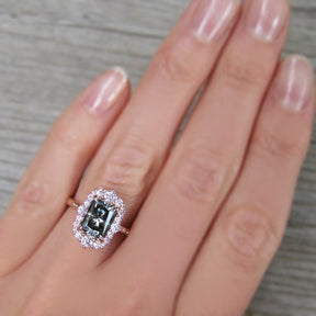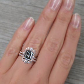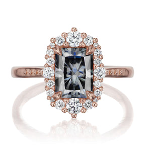 Radiant Grey Iconic™ Moissanite Center, Diamond Halo