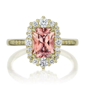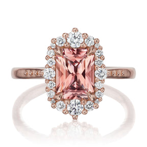 The vintage-inspired midsize Adeline makes a statement engagement ring or treat-yourself gift. Featuring a radiant cut Chatham® lab-grown peach-champagne sapphire, accented by conflict-free lab-grown or Canadian mined diamonds.