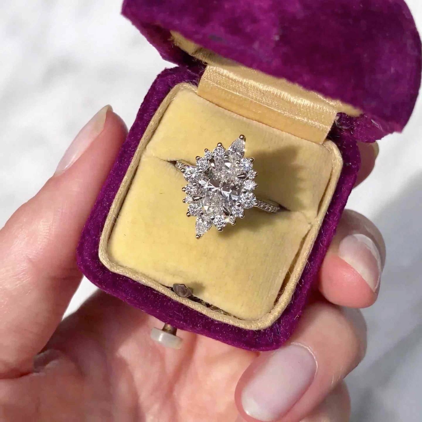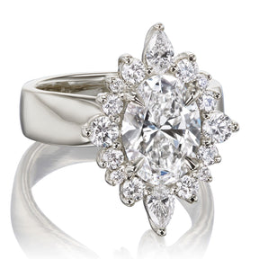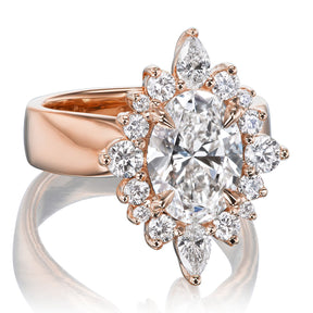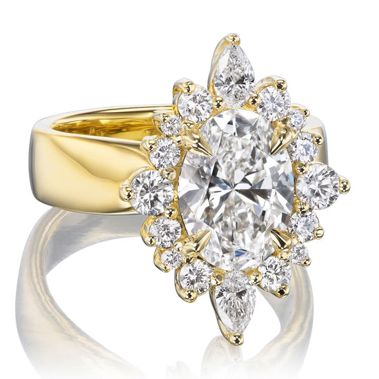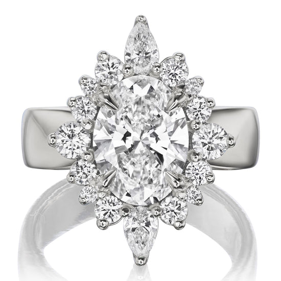 An engagement ring with a clear conscience: the extra large Anika combines ethical diamonds with vintage-inspired design. Featuring a conflict-free oval lab-grown diamond center, accented by a unique halo of lab-grown diamonds. Framed by a smooth 5mm wide shank for a modern twist.