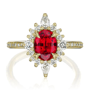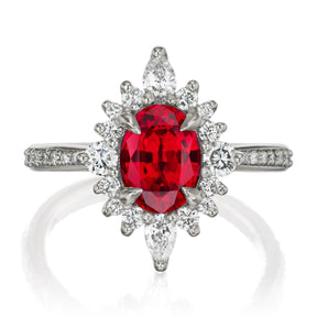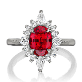 The vintage-inspired midsize Anika makes a statement engagement ring or treat-yourself gift. Featuring an oval Chatham® lab-grown ruby, accented by conflict-free lab-grown diamonds.