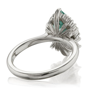 Inspired by the Greek goddess of archery, the small Artemis makes a unique engagement ring or treat-yourself gift. Featuring a pear aqua-teal Iconic™ moissanite center, accented by conflict-free lab-grown diamonds. Aqua-teal moissanite is a more durable and sparkling alternative to an aquamarine gemstone, making it a perfect ring choice.