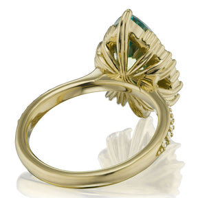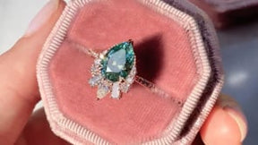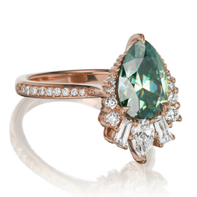 Inspired by the Greek goddess of archery, the large Artemis makes a unique engagement ring or treat-yourself gift. Featuring a pear aqua-teal Iconic™ moissanite center, accented by conflict-free lab-grown diamonds. Aqua-teal moissanite is a more durable and sparkling alternative to an aquamarine gemstone, making it a perfect ring choice.