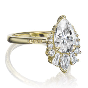 Inspired by the Greek goddess of archery, the large Artemis makes a unique engagement ring or treat-yourself gift. Featuring a pear Forever One™ colorless moissanite center, accented by conflict-free lab-grown diamonds.