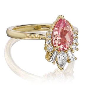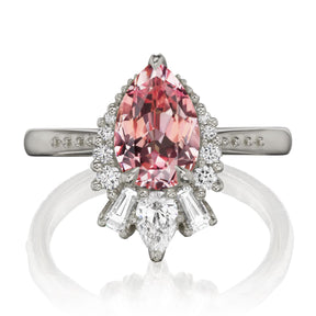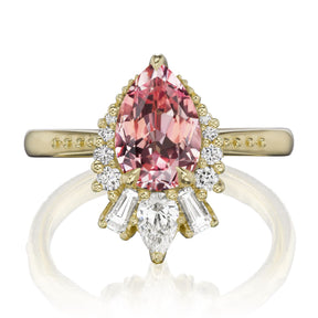Inspired by the Greek goddess of archery, the small Artemis makes a unique engagement ring or treat-yourself gift. Featuring a Chatham™ lab-grown pear peach-champagne sapphire, accented by conflict-free lab-grown diamonds.