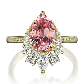Inspired by the Greek goddess of archery, the large Artemis makes a unique engagement ring or treat-yourself gift. Featuring a Chatham™ lab-grown pear peach-champagne sapphire, accented by conflict-free lab-grown diamonds.