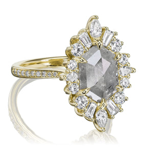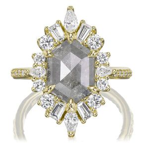 Hexagon Rose Cut Salt + Pepper Diamond Center, Diamond Halo