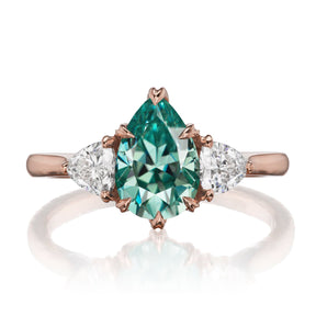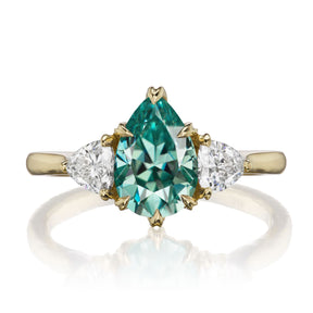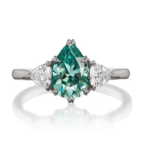 Pear Aqua-Teal Iconic™ Moissanite Center, Trillion Diamonds