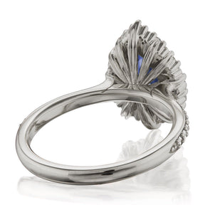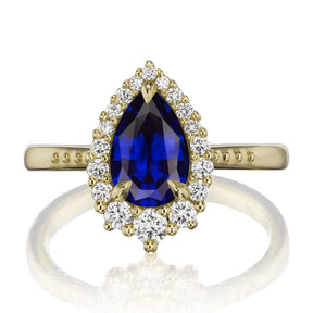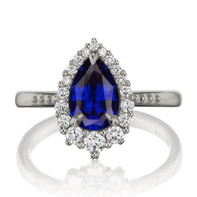 The vintage-inspired small Celeste makes a statement engagement ring or treat-yourself gift. Featuring a pear Chatham® lab-grown blue sapphire, accented by conflict-free lab-grown or Canadian mined diamonds.