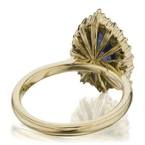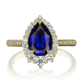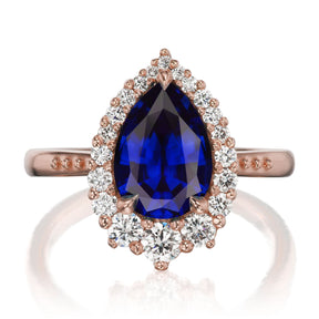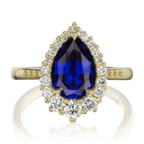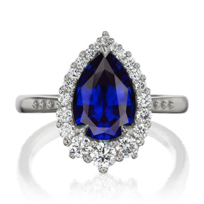 The vintage-inspired large Celeste makes a statement engagement ring or treat-yourself gift. Featuring a pear Chatham® lab-grown blue sapphire, accented by conflict-free lab-grown or Canadian mined diamonds.