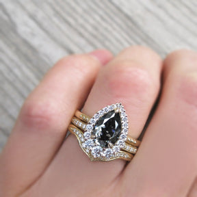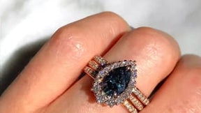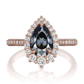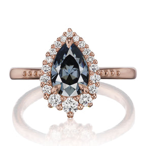 Pear Grey Iconic™ Moissanite Center, Diamond Halo