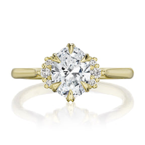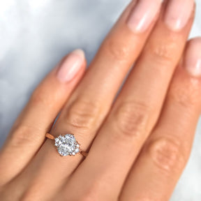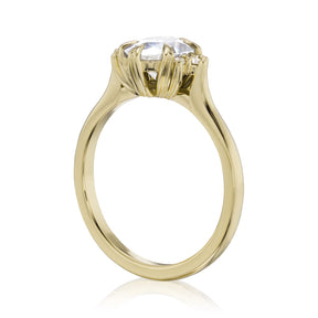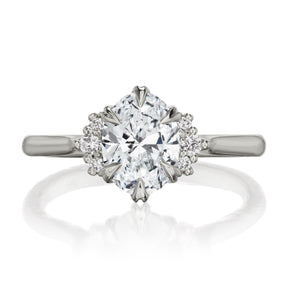 The Demi is perfect if you can’t decide between a halo or solitaire, as she’s something in between. Featuring an oval Everlūm® lab-grown diamond center, framed by conflict-free lab-grown or Canadian mined diamond accents. The Demi puts a modern and ethical twist on the engagement ring.