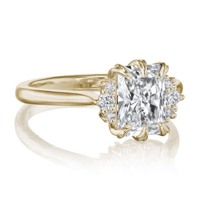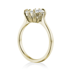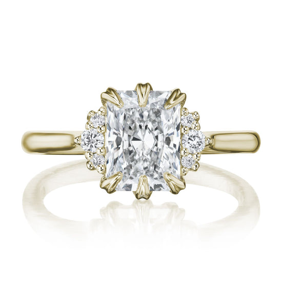 The Demi is perfect if you can’t decide between a halo or solitaire, as she’s something in between. Featuring a radiant Everlūm® lab-grown diamond center, framed by conflict-free lab-grown or Canadian mined diamond accents. The Demi puts a modern and ethical twist on the engagement ring.