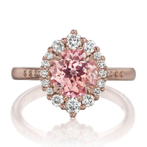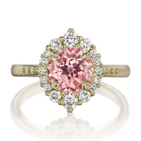 The vintage-inspired small Emerson makes a statement engagement ring or treat-yourself gift. Featuring a round Chatham® lab-grown peach-champagne sapphire center, accented by conflict-free lab-grown or Canadian mined diamonds.