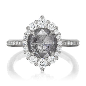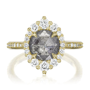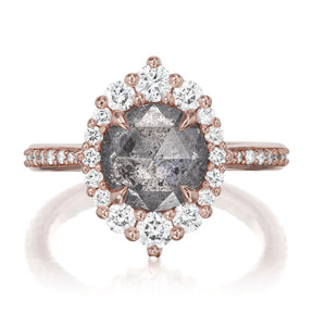 Rose Cut Salt + Pepper Diamond Center, Diamond Halo