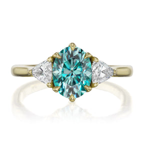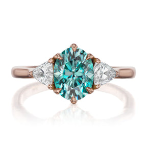 Oval Aqua-Teal Iconic™ Moissanite Center, Trillion Diamonds