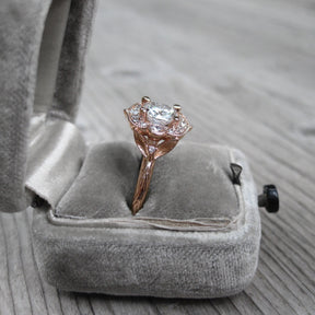 A diamond ring with a clear conscience: the vintage-inspired Sadie makes a statement engagement ring or treat-yourself gift. Featuring a lab-grown diamond center, accented by conflict-free lab-grown or Canadian mined diamonds. The shank features a twig and leaf motif with a tiny diamond nestled into each side.