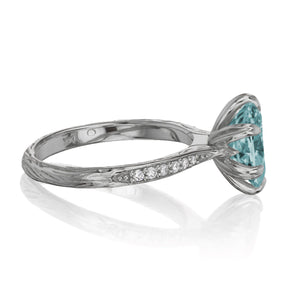 Oval Aqua-Teal Iconic™ Moissanite, Twig Textured Diamond Band