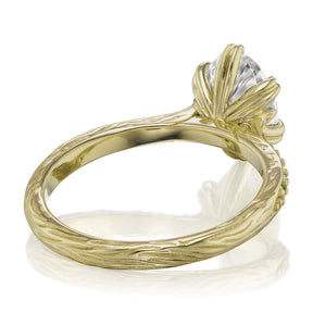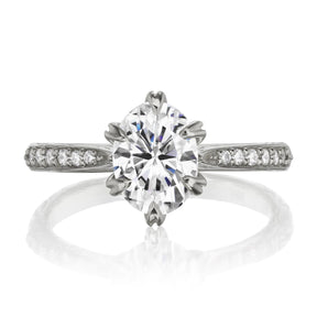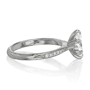 The Layla’s leaf-inspired prong setting and twig textured shank put a unique twist on the classic solitaire style. Featuring an oval Forever One™ moissanite, framed by conflict-free lab-grown or Canadian mined diamonds. The Layla is just as ethical as it is sparkling.