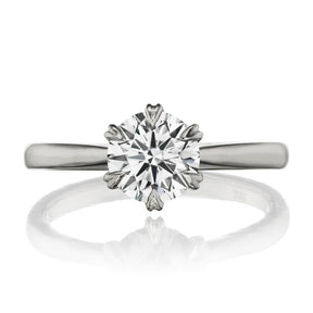 The Leona's leaf-inspired prong setting puts a unique twist on the classic solitaire design. Featuring a lab-grown diamond, and available with or without diamonds in the shank. Accent diamonds available in conflict-free Canadian mined or lab-grown.