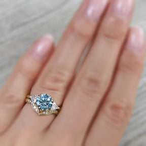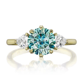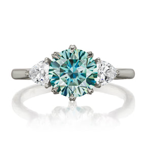 Aqua-Teal Iconic™ Moissanite Center, Trillion Diamonds