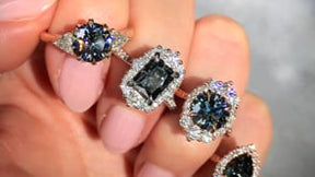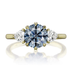 Lab-grown diamonds have the exact chemical, optical, and physical properties as mined diamonds, which means they look visually identical. The only difference is that lab-created diamonds are grown in laboratories that recreate the same environment that causes diamonds to form in the earth. The other benefit is that lab-grown diamonds have a smaller carbon footprint and less humanitarian impact than mined diamonds. These lab-grown accent diamonds are custom cut for Kristin down to the hundredth of a millimeter into the perfectly calibrated sizes needed to achieve each unique design. Learn more about lab-grown diamonds here.