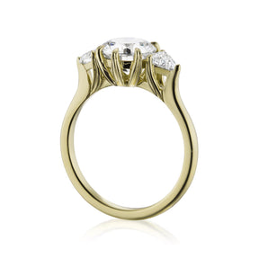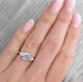 An engagement ring with a clear conscience: the Magnolia three-stone ring is the perfect blend of ethical-meets-classic. Featuring a conflict-free lab-grown diamond center, framed by trillion shaped lab-grown diamonds.