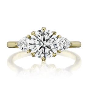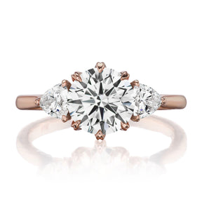 Lab-grown diamonds have the exact chemical, optical, and physical properties as mined diamonds, which means they look visually identical. The only difference is that lab-created diamonds are grown in laboratories that recreate the same environment that causes diamonds to form in the earth. The other benefit is that lab-grown diamonds have a smaller carbon footprint and less humanitarian impact than mined diamonds. These lab-grown accent diamonds are custom cut for Kristin down to the hundredth of a millimeter into the perfectly calibrated sizes needed to achieve each unique design. Learn more about lab-grown diamonds here.