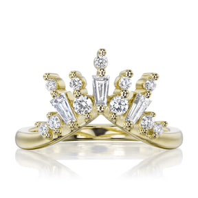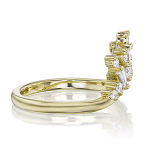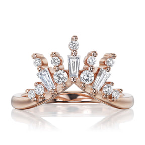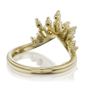 A v-shaped contour band featuring a fan of fancy conflict-free lab-grown or mined diamonds. The Nova band is beautiful paired with a variety of engagement ring styles to create your own unique, stacked ring set.
