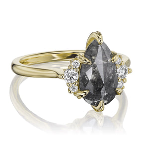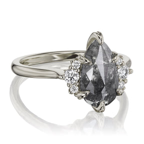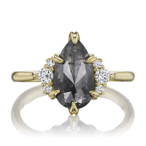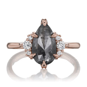 Pear Rose Cut Salt + Pepper Diamond Center, Diamond Accents