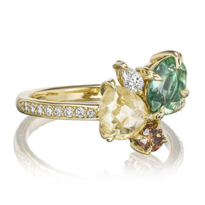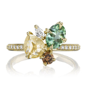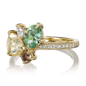 Yellow Pear Diamond, Oval Green Sapphire, Cognac & White Diamond Accents