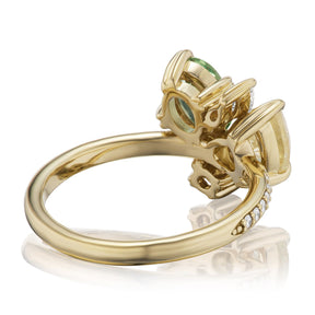 The Primrose makes the perfect engagement ring or treat-yourself gift. Our take on the Toi et Moi cluster style, featuring a rose-cut yellow diamond and an oval green sapphire, with cognac and white diamond accents. Framed by a trail of conflict-free diamonds in the shank. This ring is truly one-of-a-kind, so snag it while you can!