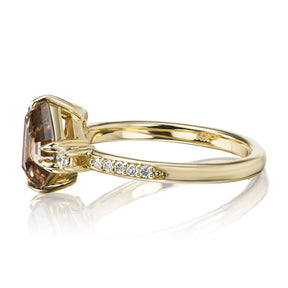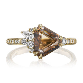 The Remy makes the perfect engagement ring or treat-yourself gift. Featuring an extremely rare, clear cognac diamond in a geometric-shaped portrait cut, accented by fancy white diamonds and a trail of pavé diamonds in the shank. This ring is truly one-of-a-kind, so snag it while you can!