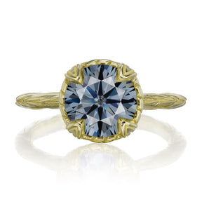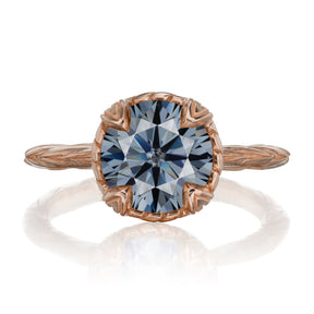 The Sienna is the perfect mix of organic-meets-refined. The floral basket setting and willow leaf-inspired shank put a unique twist on the classic solitaire design. Featuring a Hearts & Arrows Iconic™ grey moissanite, the Sienna is as ethical as it is sparkling.