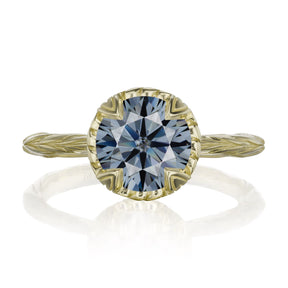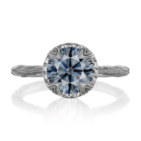 The Sienna is the perfect mix of organic-meets-refined. The floral basket setting and willow leaf-inspired shank put a unique twist on the classic solitaire design. Featuring a Hearts & Arrows Iconic™ grey moissanite, the Sienna is as ethical as it is sparkling.