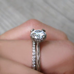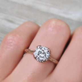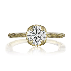 The Sienna is the perfect mix of organic-meets-refined. The floral basket setting and willow leaf-inspired shank put a unique twist on the classic solitaire design. Featuring a lab-grown diamond, the Sienna is as ethical as it is sparkling.