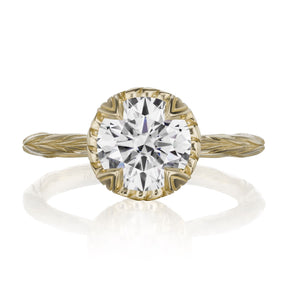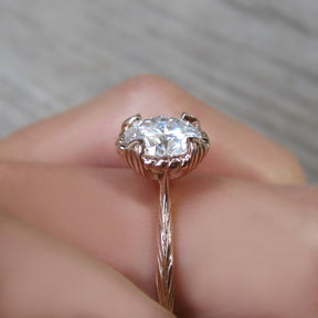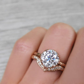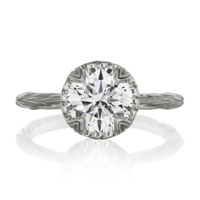 The Sienna is the perfect mix of organic-meets-refined. The floral basket setting and willow leaf-inspired shank put a unique twist on the classic solitaire design. Featuring your choice of moissanite: Forever One™ from Charles & Colvard, or Supernova™ from Moissanite International.
