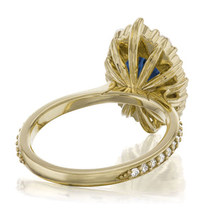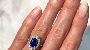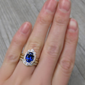 The vintage-inspired large Sofia makes a statement engagement ring or treat-yourself gift. Featuring an oval Chatham® lab-grown blue sapphire, accented by conflict-free lab-grown or Canadian mined diamonds.