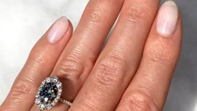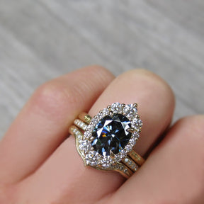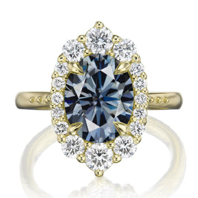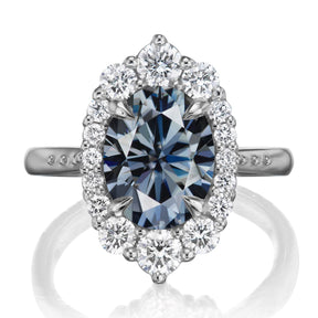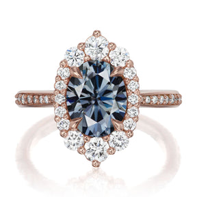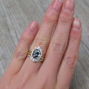Oval Iconic™ Grey Moissanite Center, Diamond Halo