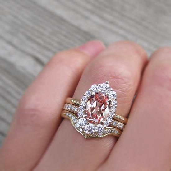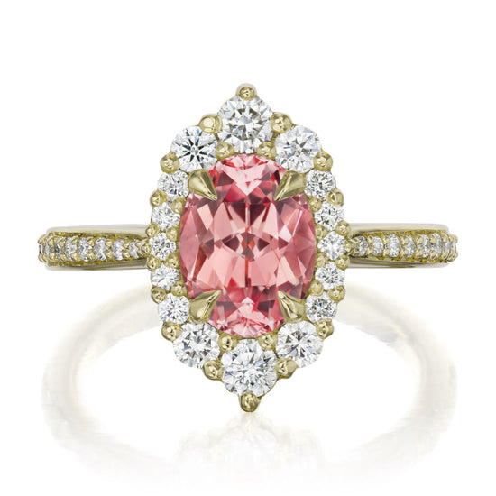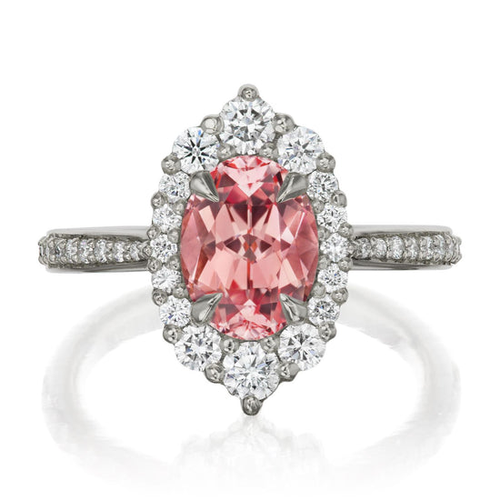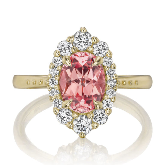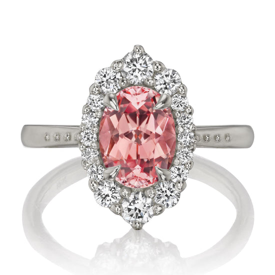 The vintage-inspired midsize Sofia makes a statement engagement ring or treat-yourself gift. Featuring an oval Chatham® lab-grown peach-champagne sapphire, accented by conflict-free lab-grown or Canadian mined diamonds.