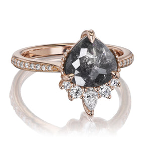 Trillion Rose Cut Salt + Pepper Diamond Center, Diamond Halo