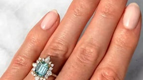 The vintage-inspired midsize Talia makes a statement engagement ring or treat-yourself gift. Featuring an emerald cut aqua-teal Iconic™ moissanite center, accented by conflict-free lab-grown diamonds. The Talia is as ethical as it is sparkling. Aqua-teal moissanite is a more durable and sparkling alternative to an aquamarine gemstone, making it a perfect ring choice.