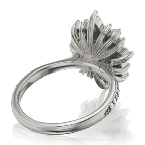 Lab-grown diamonds have the exact chemical, optical, and physical properties as mined diamonds, which means they look visually identical. The only difference is that lab-created diamonds are grown in laboratories that recreate the same environment that causes diamonds to form in the earth. The other benefit is that lab-grown diamonds have a smaller carbon footprint and less humanitarian impact than mined diamonds. These lab-grown accent diamonds are custom cut for Kristin down to the hundredth of a millimeter into the perfectly calibrated sizes needed to achieve each unique design. Learn more about lab-grown diamonds here.