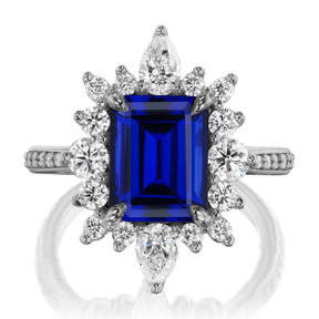 The vintage-inspired large Talia makes a statement engagement ring or treat-yourself gift. Featuring an emerald cut Chatham® lab-grown blue sapphire center, accented by conflict-free lab-grown diamonds. The Talia is as ethical as it is sparkling.
