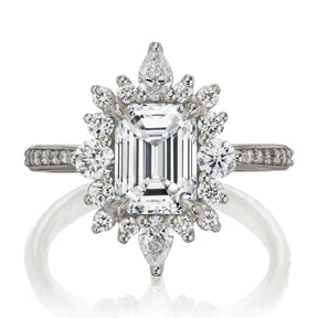 An engagement ring with a clear conscience: the midsize Talia combines ethical diamonds with vintage-inspired design. Featuring a conflict-free emerald cut lab-grown diamond center, accented by a unique halo of lab-grown diamonds.